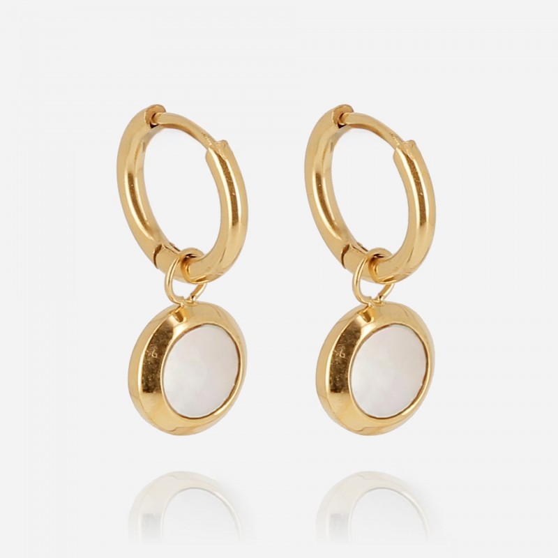 Boucles d'oreilles ZAG BIJOUX en acier doré avec nacre. Système crochet.