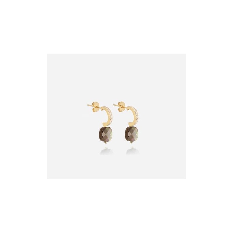 Boucles d'oreilles ZAG BIJOUX en acier doré avec strass et nacre grise. Système belge (tige + poussette).
