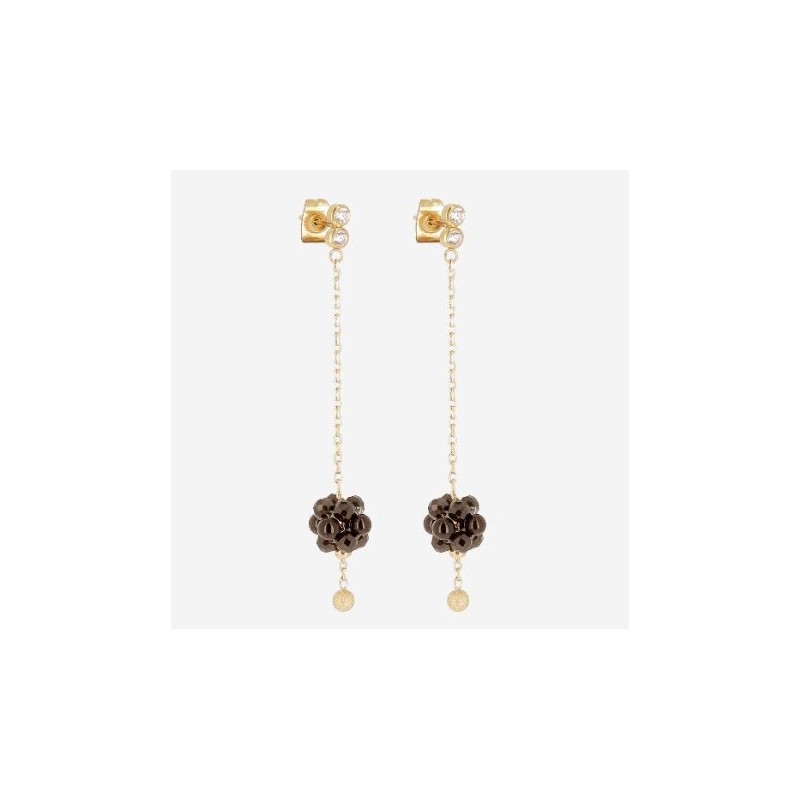 Boucles d'oreilles ZAG BIJOUX en acier doré avec perles onyx et strass. Système belge (tige + poussette).