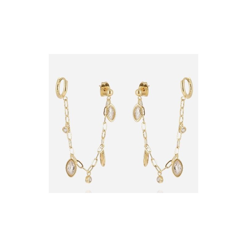 Boucles d'oreilles ZAG BIJOUX en acier doré double avec strass. Système belge (tige + poussette).