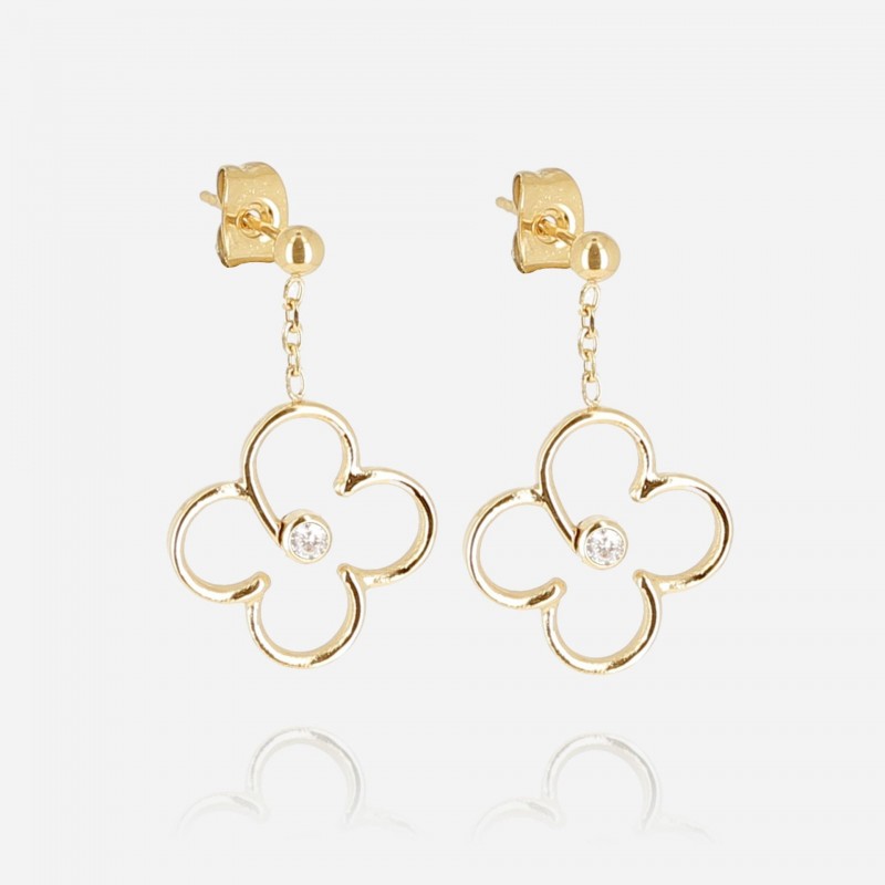 Boucles d'oreilles ZAG BIJOUX en acier doré avec strass. Système belge (tige + poussette).