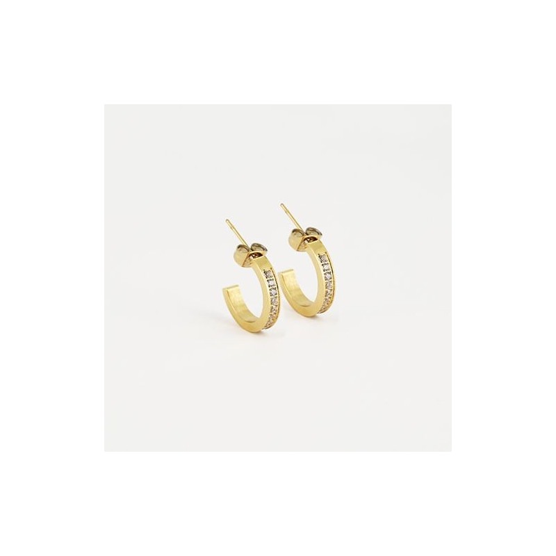 Boucles d'oreilles ZAG BIJOUX en acier doré créoles avec strass. Système belge (tige + poussette).