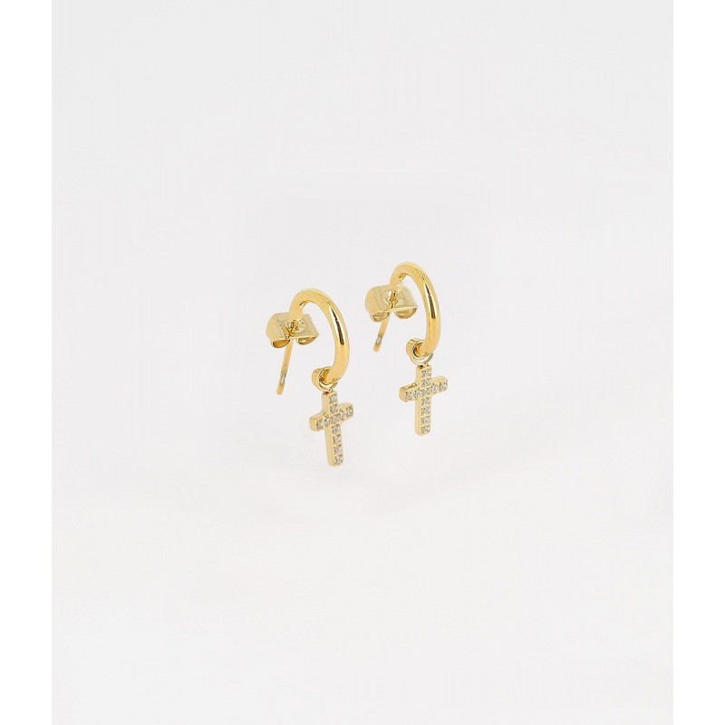 Boucles d'oreilles ZAG BIJOUX en acier doré avec strass. Système belge (tige + poussette).