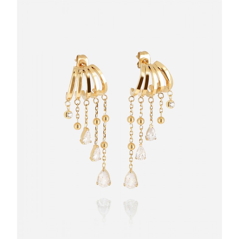 Boucles d'oreilles ZAG BIJOUX en acier doré avec strass. Système belge (tige + poussette).