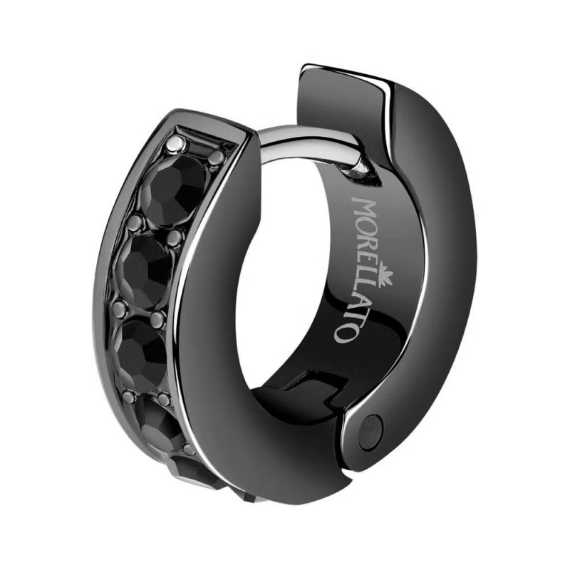 Boucles d'oreilles MORELLATO en acier noir créole avec strass noirs. Système cliquet. A l'unité.