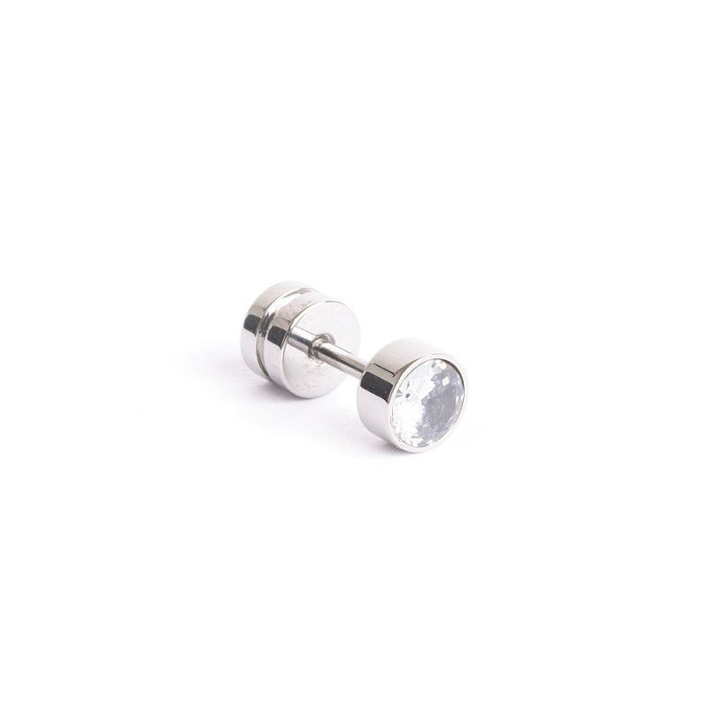 Boucles d'oreilles GEMINI en acier avec strass blanc. Système vis (tige + poussette vis). A l'unité.