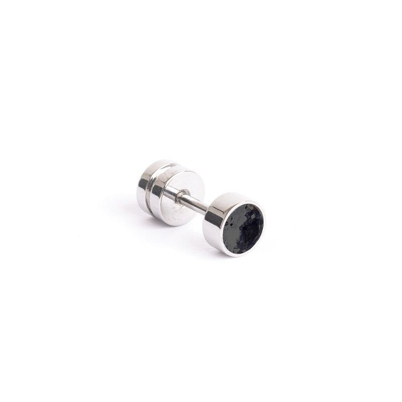 Boucles d'oreilles GEMINI en acier avec strass noir. Système vis (tige + poussette vis). A l'unité.