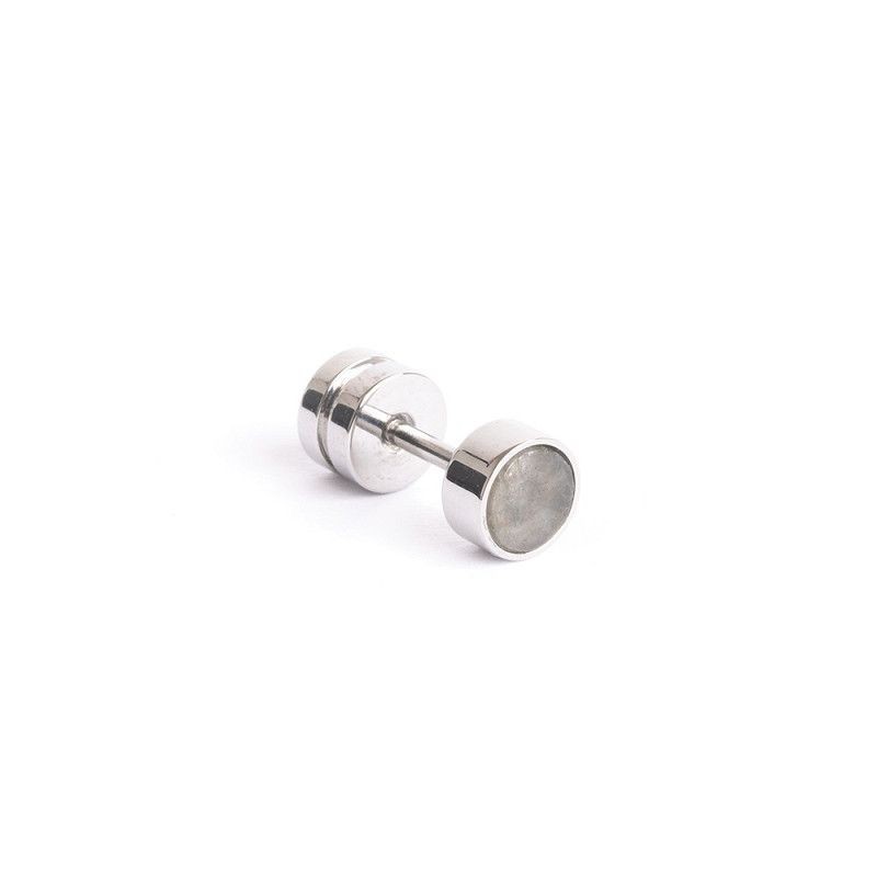 Boucles d'oreilles GEMINI en acier avec Larvikite. Système vis (tige + poussette vis). A l'unité.