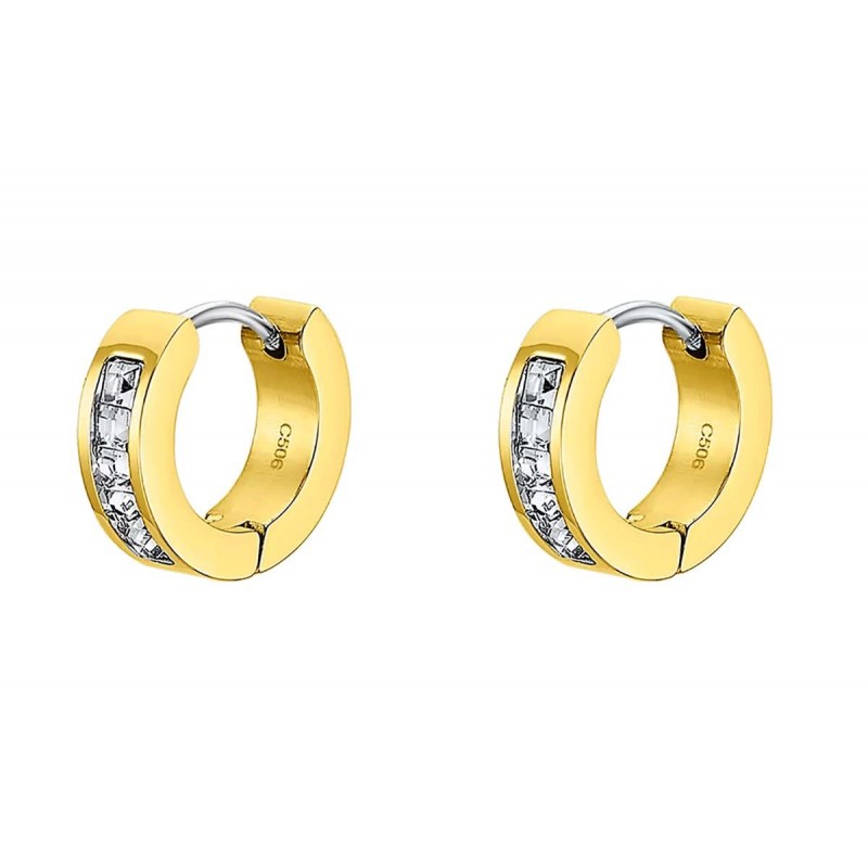 Boucles d'oreilles LOTUS en acier doré créoles avec strass. Système crochet.