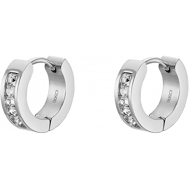 Boucles d'oreilles LOTUS en acier créoles avec strass. Système crochet.