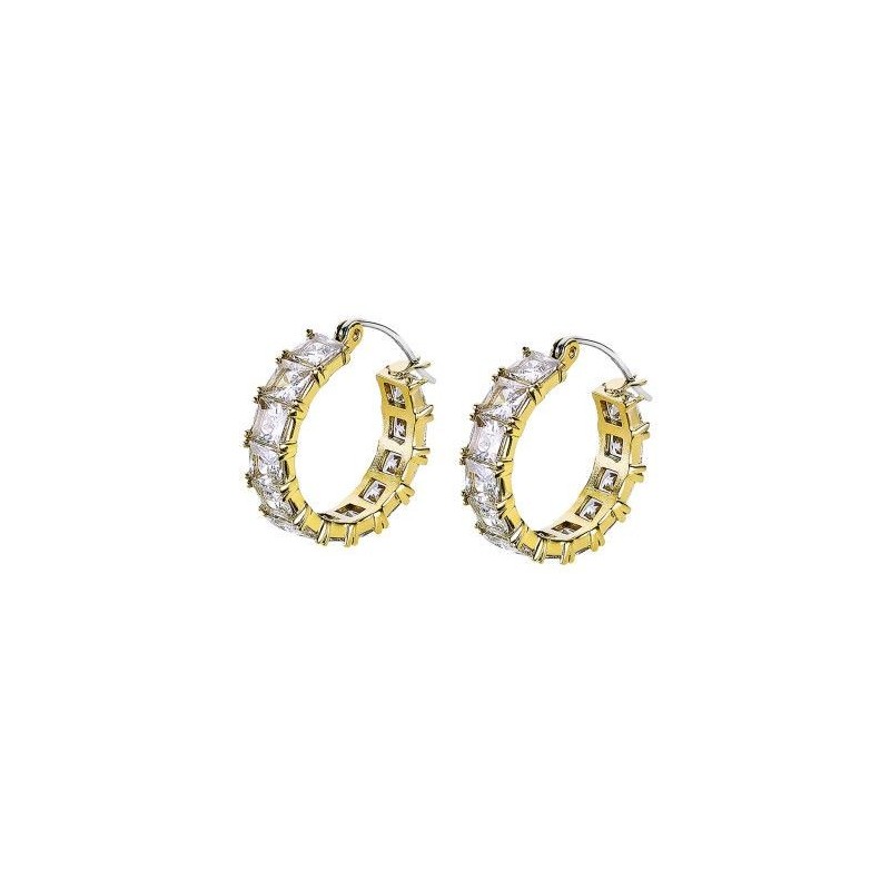 Boucles d'oreilles LOTUS en acier doré créoles avec strass. Système crochet.