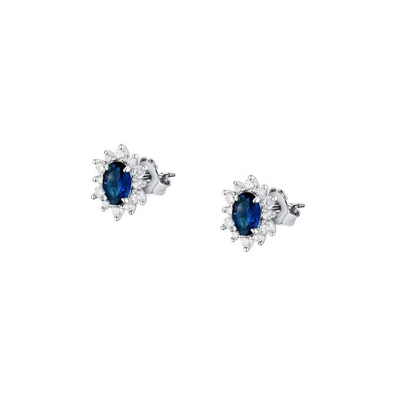 Boucles d'oreilles MORELLATO en argent 925/1000 rhodié avec oxydes de zirconium blancs et bleus. Système belge (tige + poussette). Poids: 2g