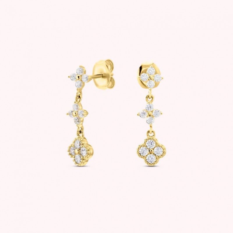 Boucles d'oreilles AGATHA en argent 925/1000 et plaque or pendantes sertis d'oxydes de zirconium. Système belge (tige + poussette).