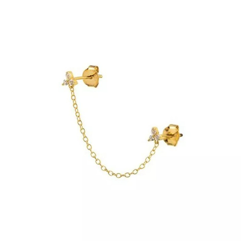 Boucles d'oreilles AGATHA en argent 925/1000 et plaque or sertis d'oxydes de zirconium. Système belge (tige + poussette). A l'unité.