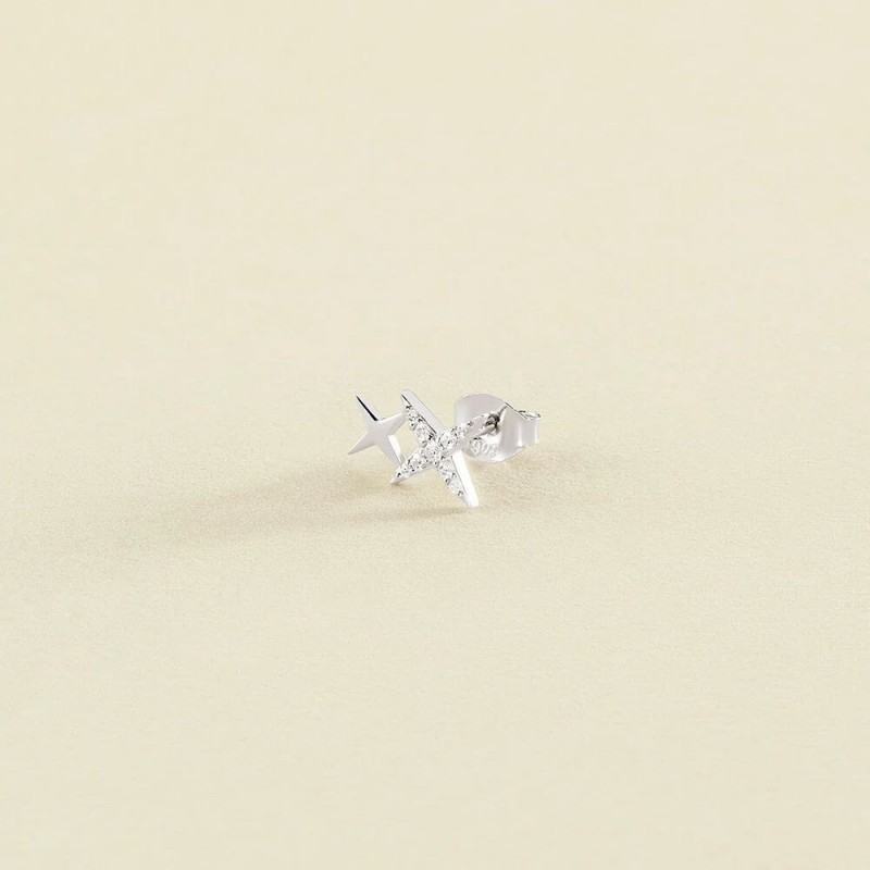 Boucle d'oreille AGATHA en argent 925/1000 rhodié sertis d'oxydes de zirconium. Système belge (tige + poussette). A l'unité.
