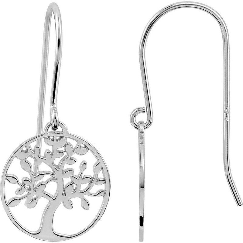 Boucles d'oreilles en argent 925/1000 rhodié pendantes arbre de vie. Système crochet. Poids: 1.15g