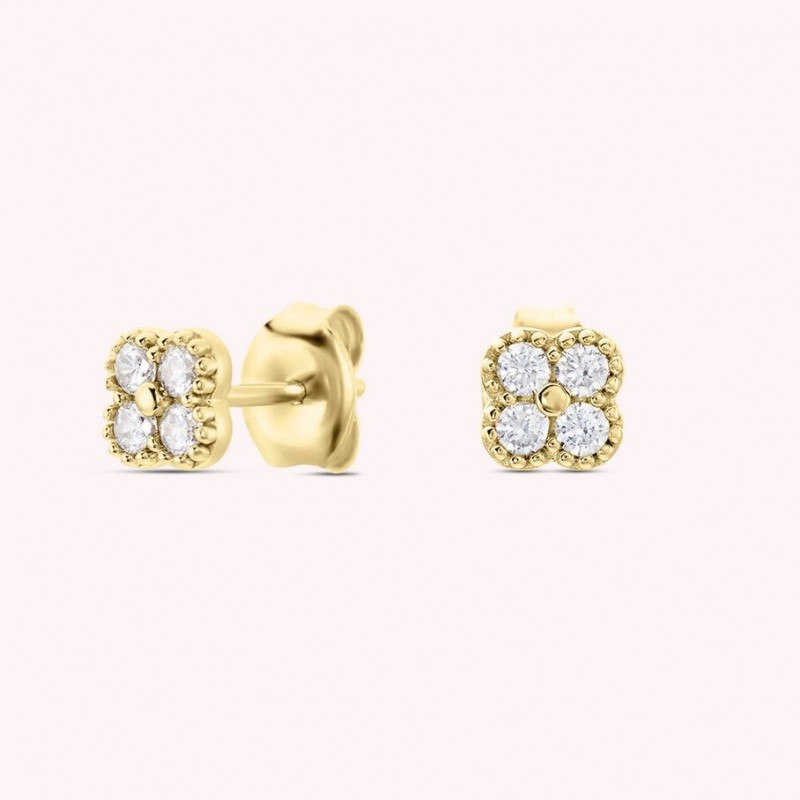 Boucles d'oreilles AGATHA en argent 925/1000 et plaque or sertis d'oxydes de zirconium. Système belge (tige + poussette).