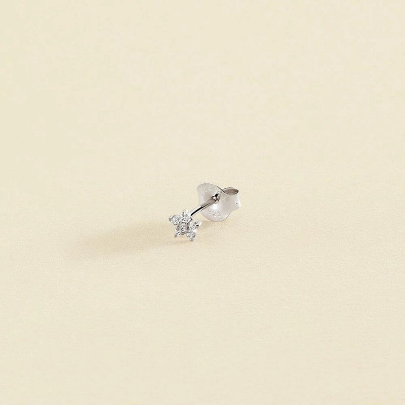 Boucle d'oreille AGATHA en argent 925/1000 rhodié avec oxydes de zirconium. Système belge (tige + poussette). A l'unité.