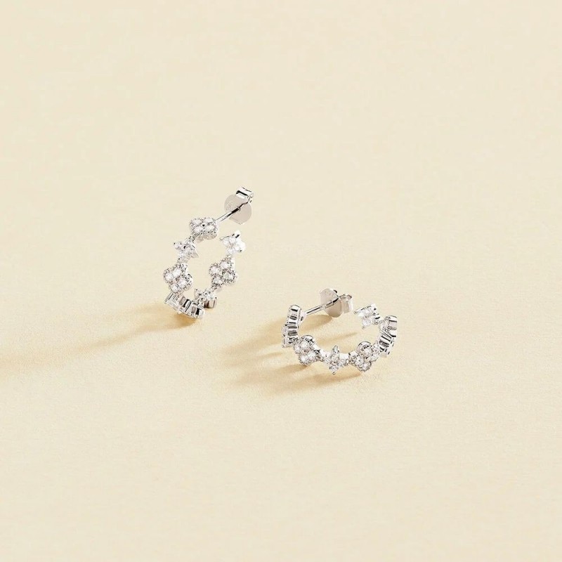 Boucles d'oreilles AGATHA en argent 925/1000 rhodié créoles sertis d'oxydes de zirconium. Système belge (tige + poussette).