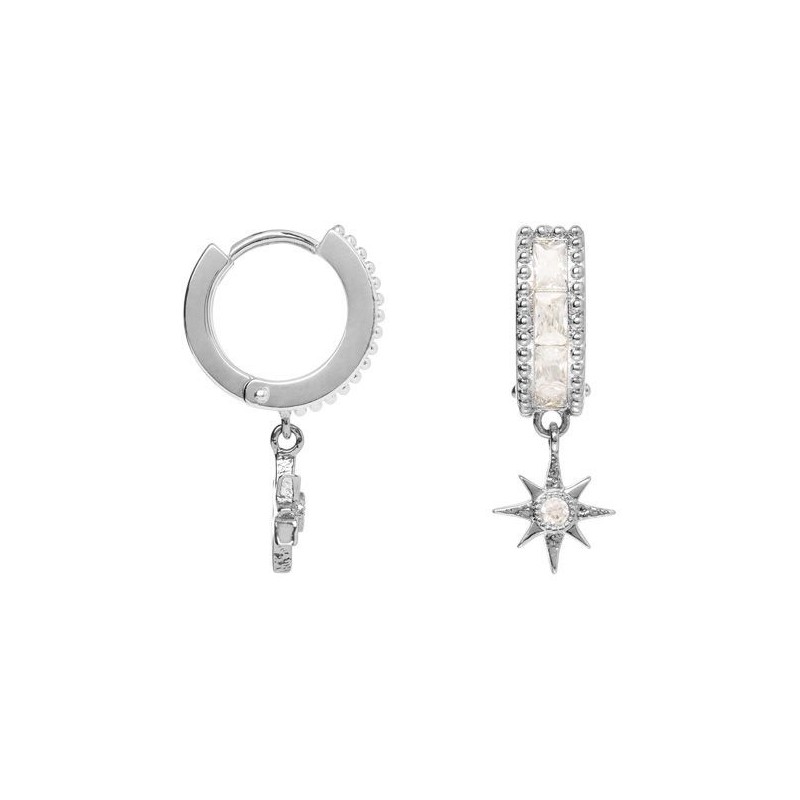 Boucles d'oreilles en argent 925/1000 rhodié sertis d'oxydes de zirconium. Système crochet. Poids: 3.64g