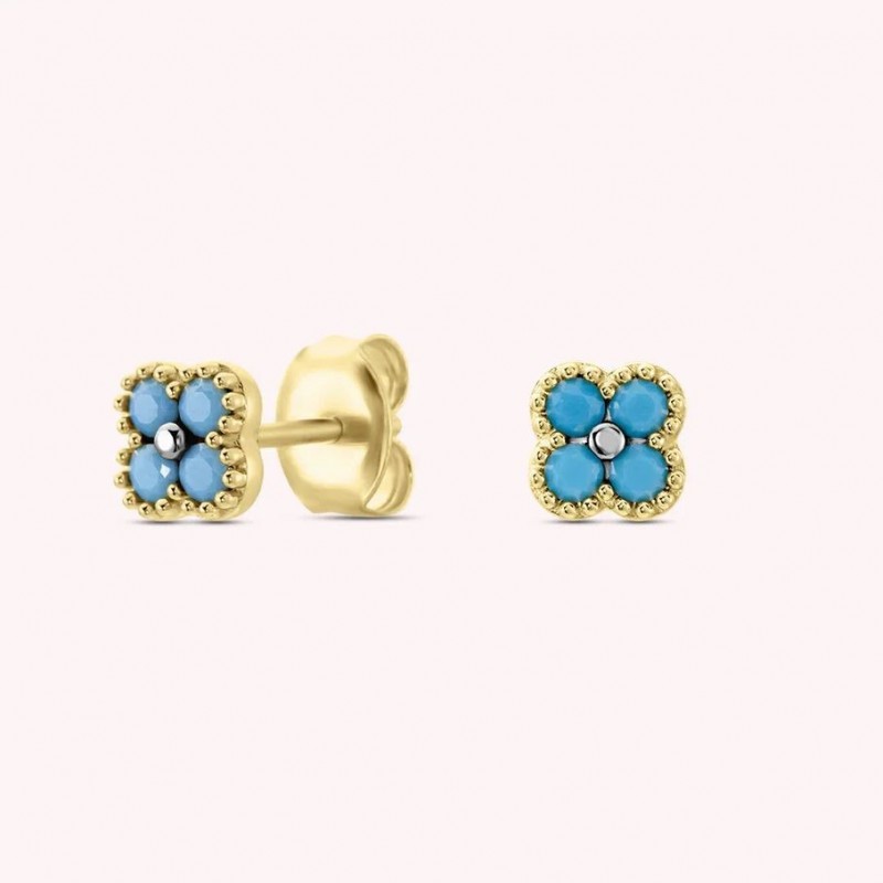 Boucles d'oreilles AGATHA en argent 925/1000 et plaque or sertis d'oxydes de zirconium bleus. Système belge (tige + poussette).