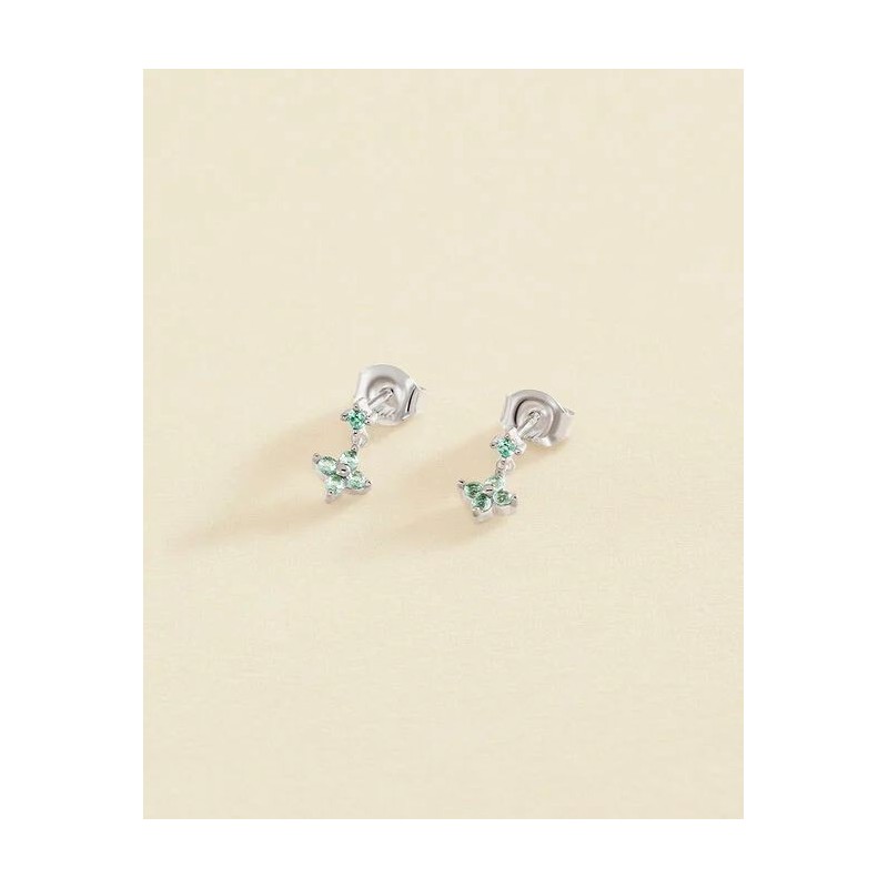 Boucles d'oreilles AGATHA en argent 925/1000 rhodié sertis d'oxydes de zirconium verts. Système belge (tige + poussette).