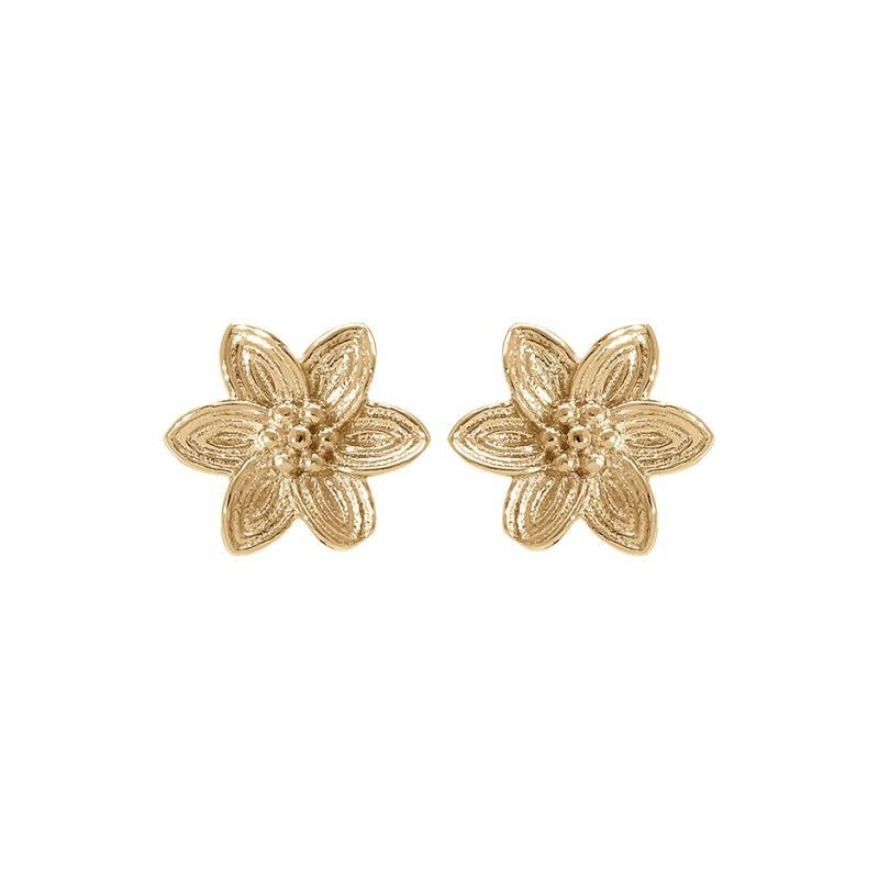 Boucles d'oreilles en argent 925/1000 et plaque or en forme de fleurs. Système belge (tige + poussette). Poids: 1.20g