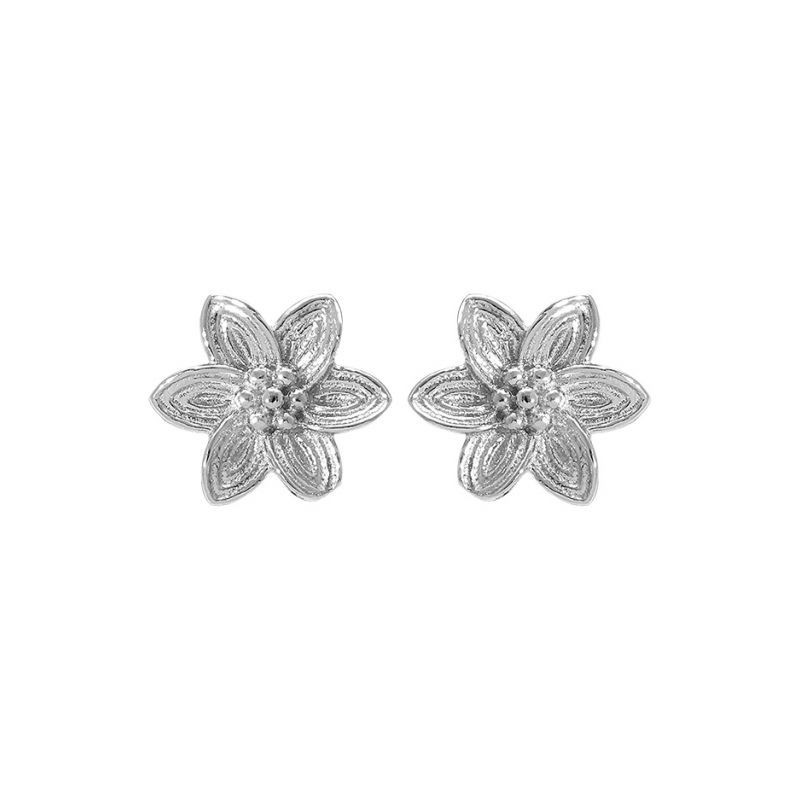 Boucles d'oreilles en argent 925/1000 rhodié en forme de fleurs. Système belge (tige + poussette). Poids: 1.20g