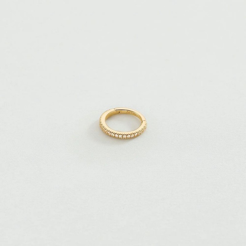 Boucles d'oreilles AGATHA en argent 925/1000 et plaque or créole sertis d'oxydes de zirconium. Système cliquet. A l'unité.