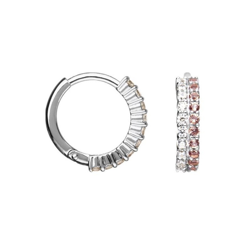 Boucles d'oreilles en argent 925/1000 rhodié créoles sertis d'oxydes de zirconium roses. Système cliquet. Poids: 1.66g.