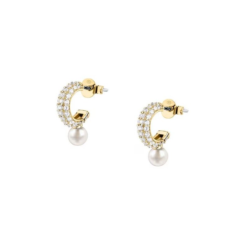 Boucles d'oreilles MORELLATO en argent 925/1000 et plaque or sertis d'oxydes de zirconium et perles de culture. Système belge (tige + poussette). Poids: 1g.