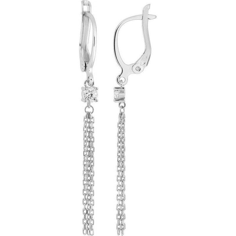 Boucles d'oreilles en argent 925/1000 rhodié pendantes sertis d'oxydes de zirconium. Système dormeuses. Poids: 1.70g