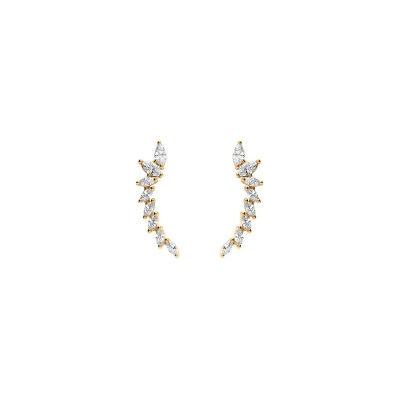 Boucles d'oreilles en argent 925/1000 et plaque or sertis d'oxydes de zirconium. Système belge (tige + poussette).