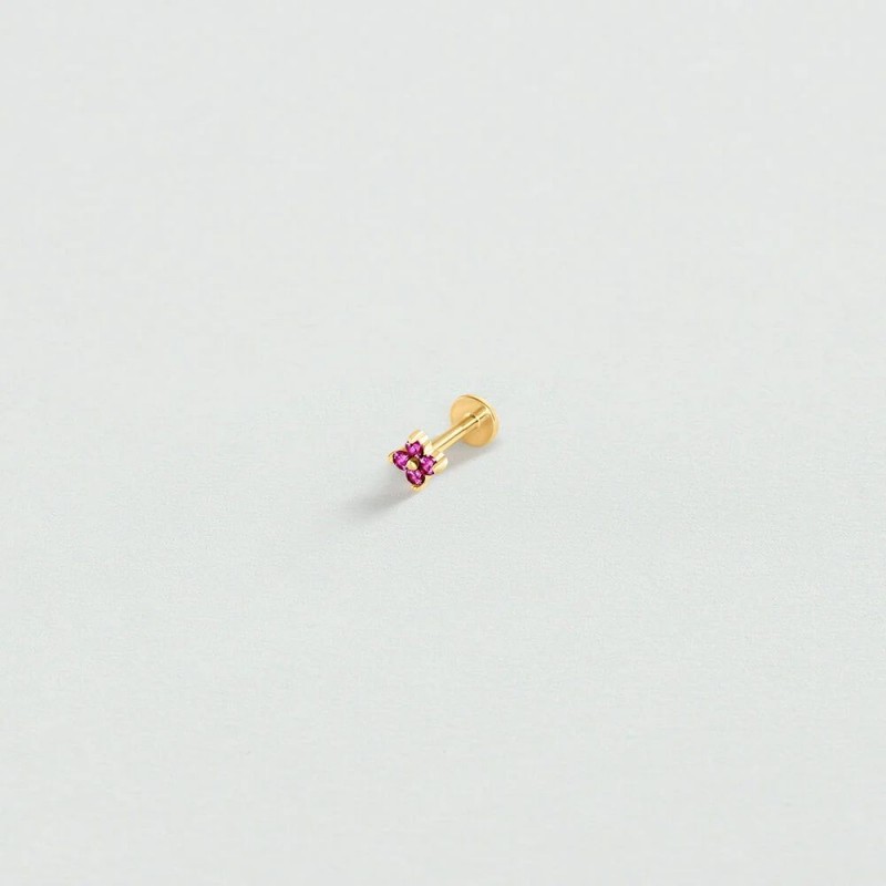Boucles d'oreilles AGATHA en argent 925/1000 et plaque or avec oxydes de zirconium roses. Système vis (tige + poussette vis). A l'unité.