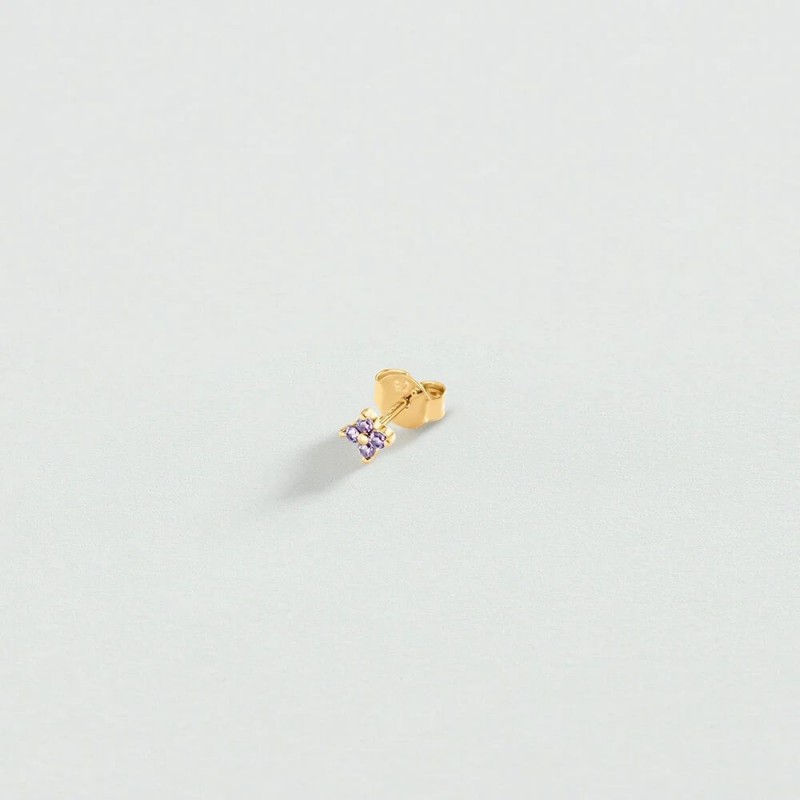 Boucles d'oreilles AGATHA en argent 925/1000 et plaque or sertis d'oxydes de zirconium violets. Système belge (tige + poussette). A l'unité.