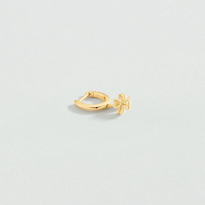 Boucles d'oreilles AGATHA en argent 925/1000 et plaque or créoles avec trèfle. Système cliquet. A l'unité.