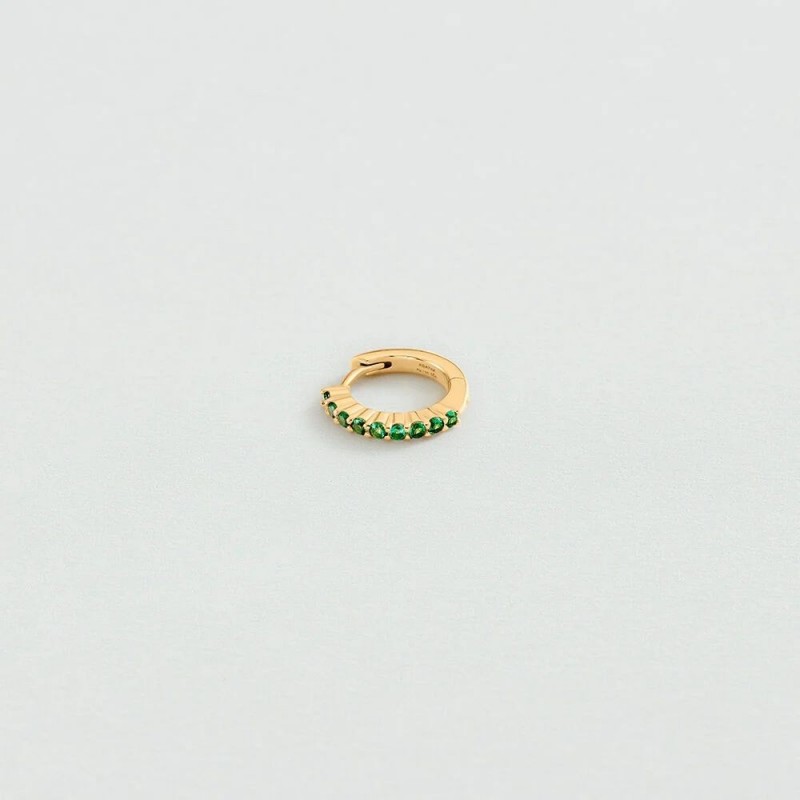 Boucles d'oreilles AGATHA en argent 925/1000 et plaque or créoles sertis d'oxydes de zirconium verts. Système cliquet. A l'unité.