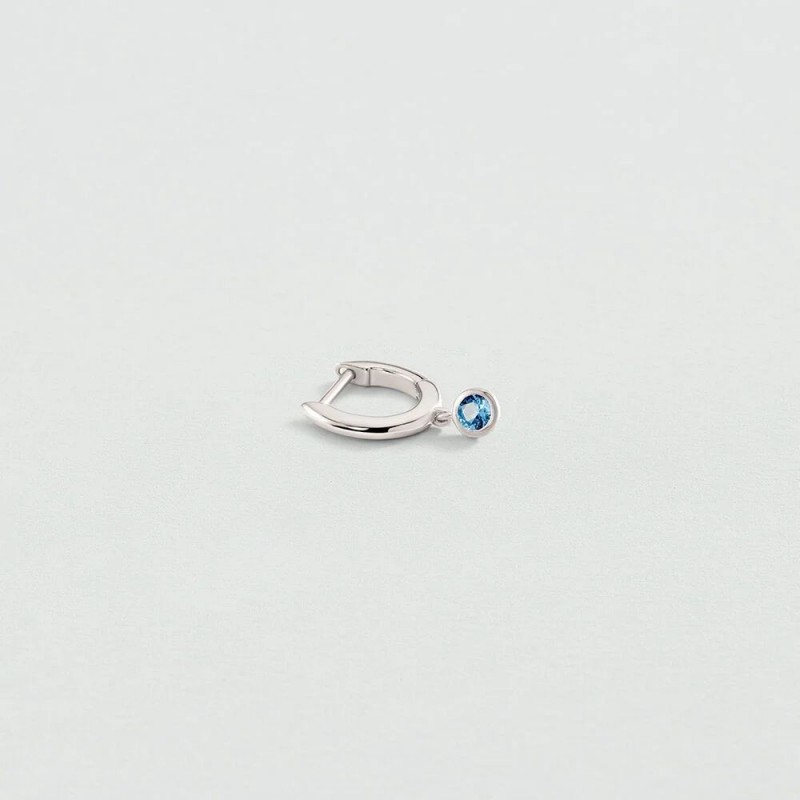 Boucles d'oreilles AGATHA en argent 925/1000 rhodié créoles sertis d'oxydes de zirconium bleus. Système cliquet. A l'unité.