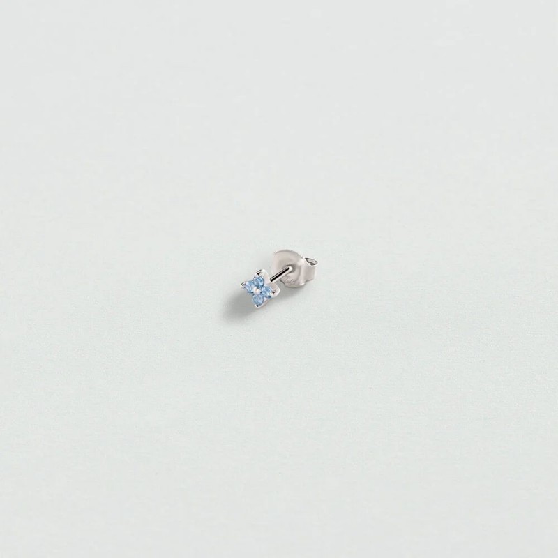 Boucles d'oreilles AGATHA en argent 925/1000 rhodié sertis d'oxydes de zirconium bleus. Système belge (tige + poussette). A l'unité.