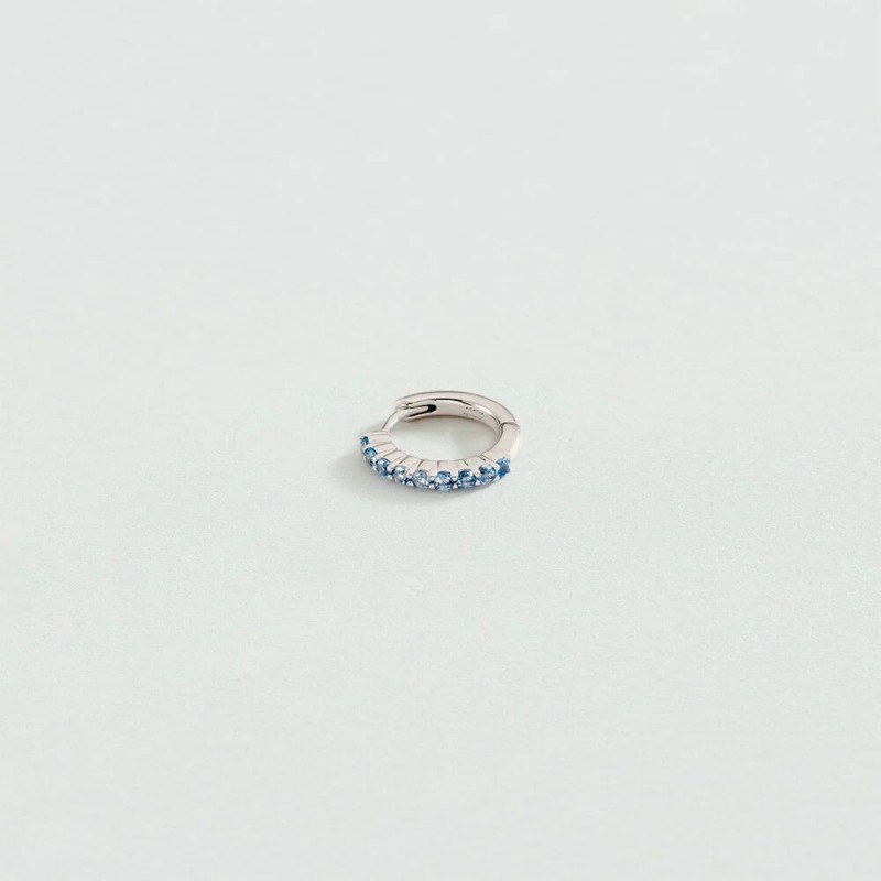 Boucles d'oreilles AGATHA en argent 925/1000 rhodié créoles sertis d'oxydes de zirconium bleus. Système cliquet. A l'unité.