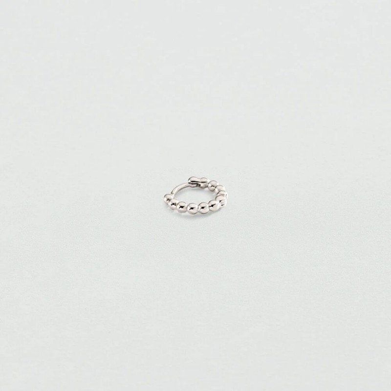 Boucles d'oreilles AGATHA en argent 925/1000 rhodié créoles perlées. Système cliquet. A l'unité.