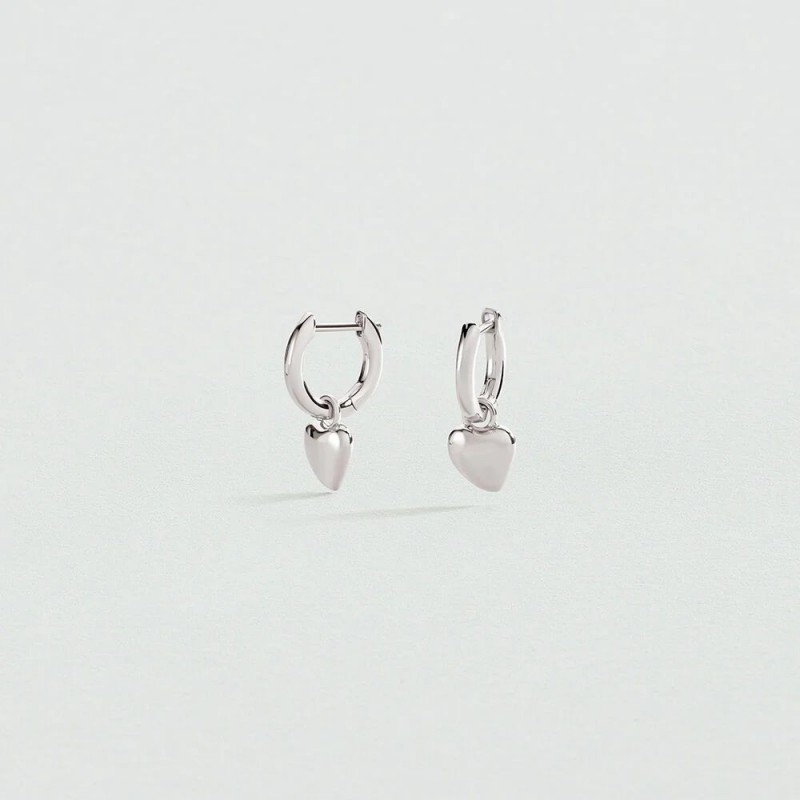 Boucles d'oreilles AGATHA en argent 925/1000 rhodié créoles avec coeur. Système cliquet.