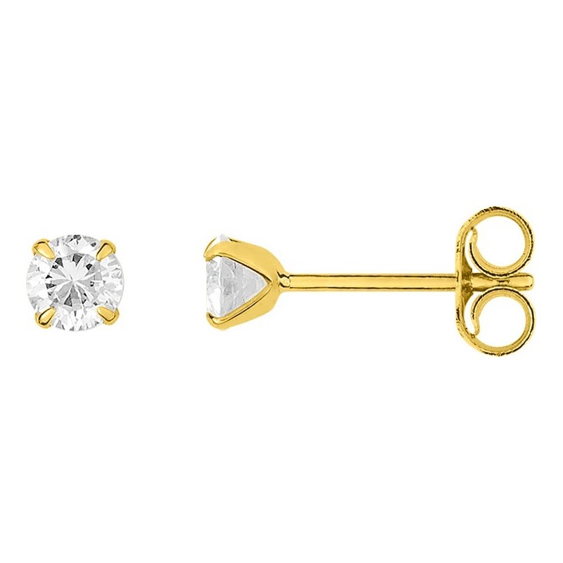Boucles d'oreilles en or jaune 375/1000 serti d'oxydes de zirconium. Système belge (tige + poussette). Poids: 0.25g