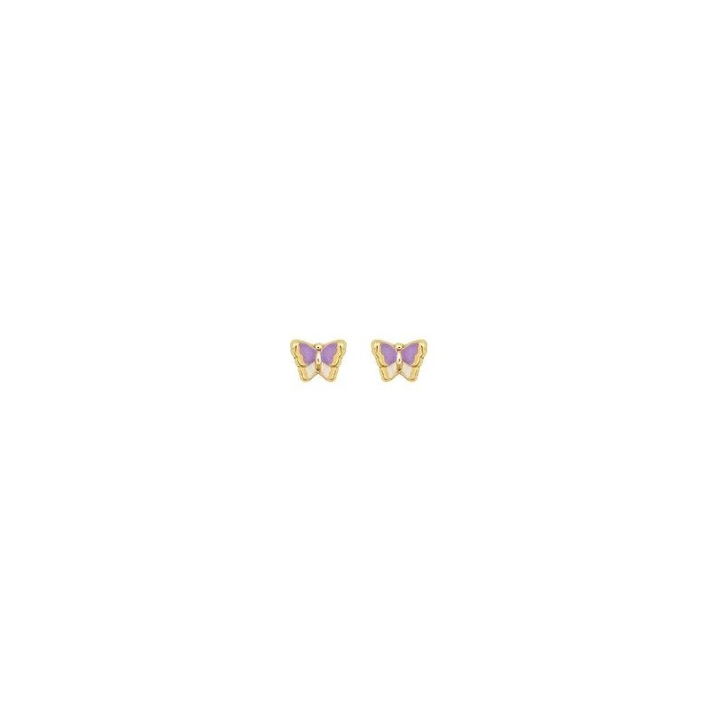 Boucles d'oreilles en or jaune 375/1000 en forme de papillons. Système belge (tige + poussette). Poids: 0.35g