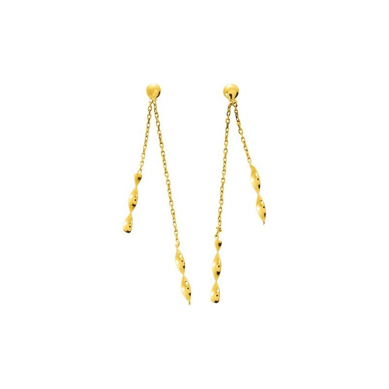 Boucles d'oreilles en or 375/1000 jaune pendantes. Système belge (tige + poussette). Poids: 0.60g