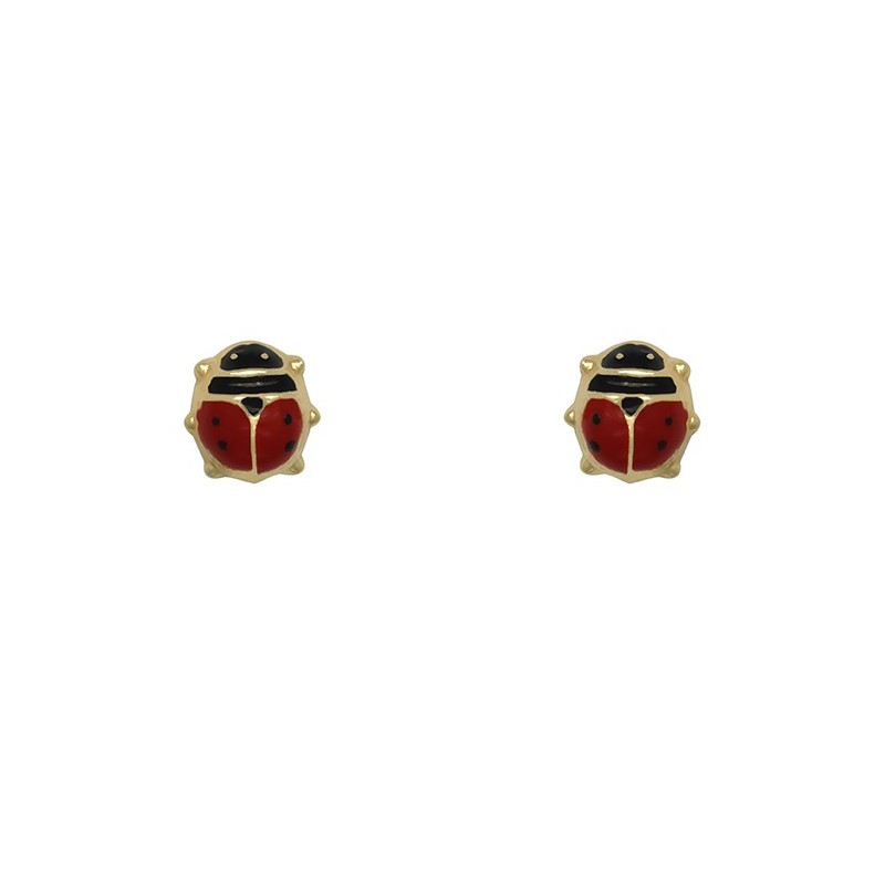 Boucles d'oreilles en or jaune 375/1000 en forme de coccinelles. Système vis (tige + poussette vis). Poids: 0.40g