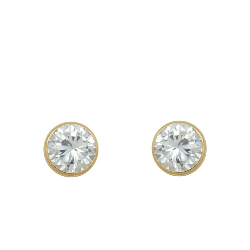 Boucles d'oreilles en or 375/1000 jaune sertis d'oxydes de zirconium. Système vis (tige + poussette vis). Poids: 0.26g