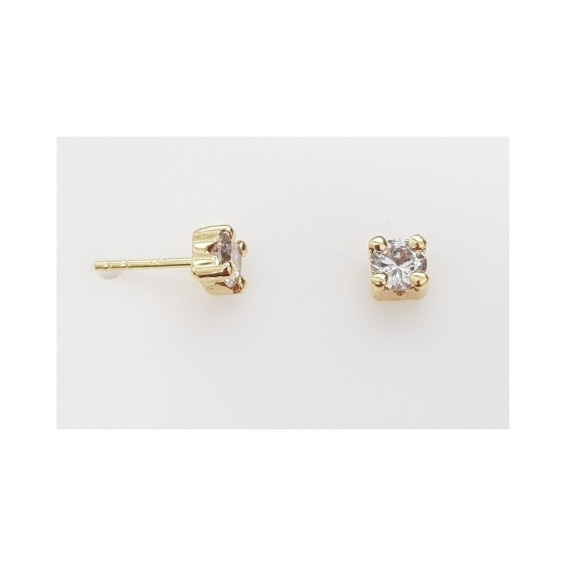 Boucles d'oreilles en or jaune 375/1000 serti d'oxydes de zirconium. SystèmeVis (tige + poussette vis). Poids: 0.25g
