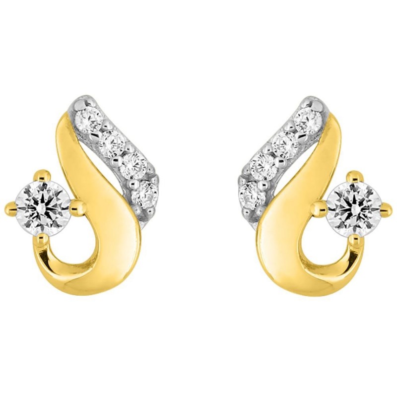 Boucles d'oreilles en or jaune 375/1000 serti d'oxydes de zirconium sur or blanc. Système belge (tige + poussette). Poids: 0.50g