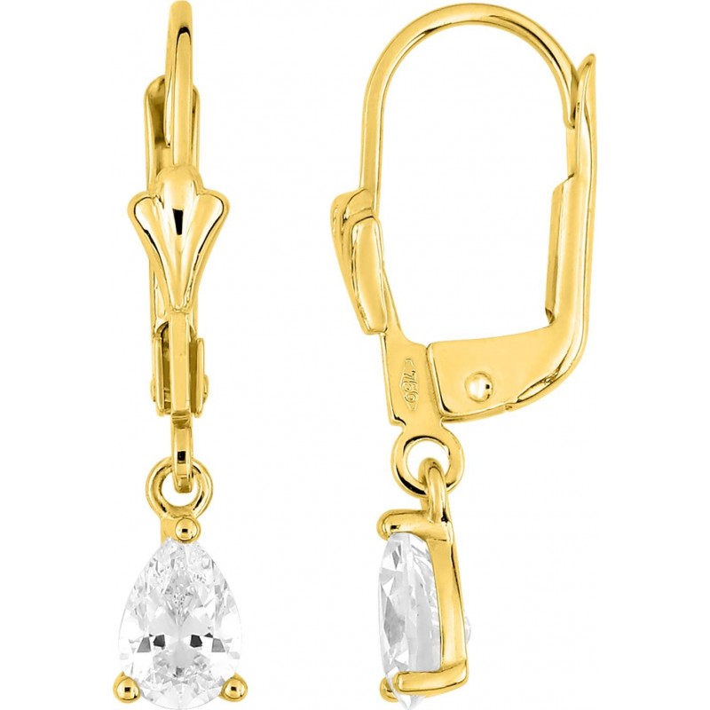 Boucles d'oreilles en or 375/1000 jaune avec oxydes de zirconium. Système dormeuses. Poids: 1.20g